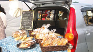 お天気は快晴!ちょっと風が強いかな(?)とも思いましたが、海の近くだからネ。今日の助手は末の妹の菜子です。金曜日の夜に寮から帰省して土曜日から私のマルシェの準備を手伝ってくれました(^-^)